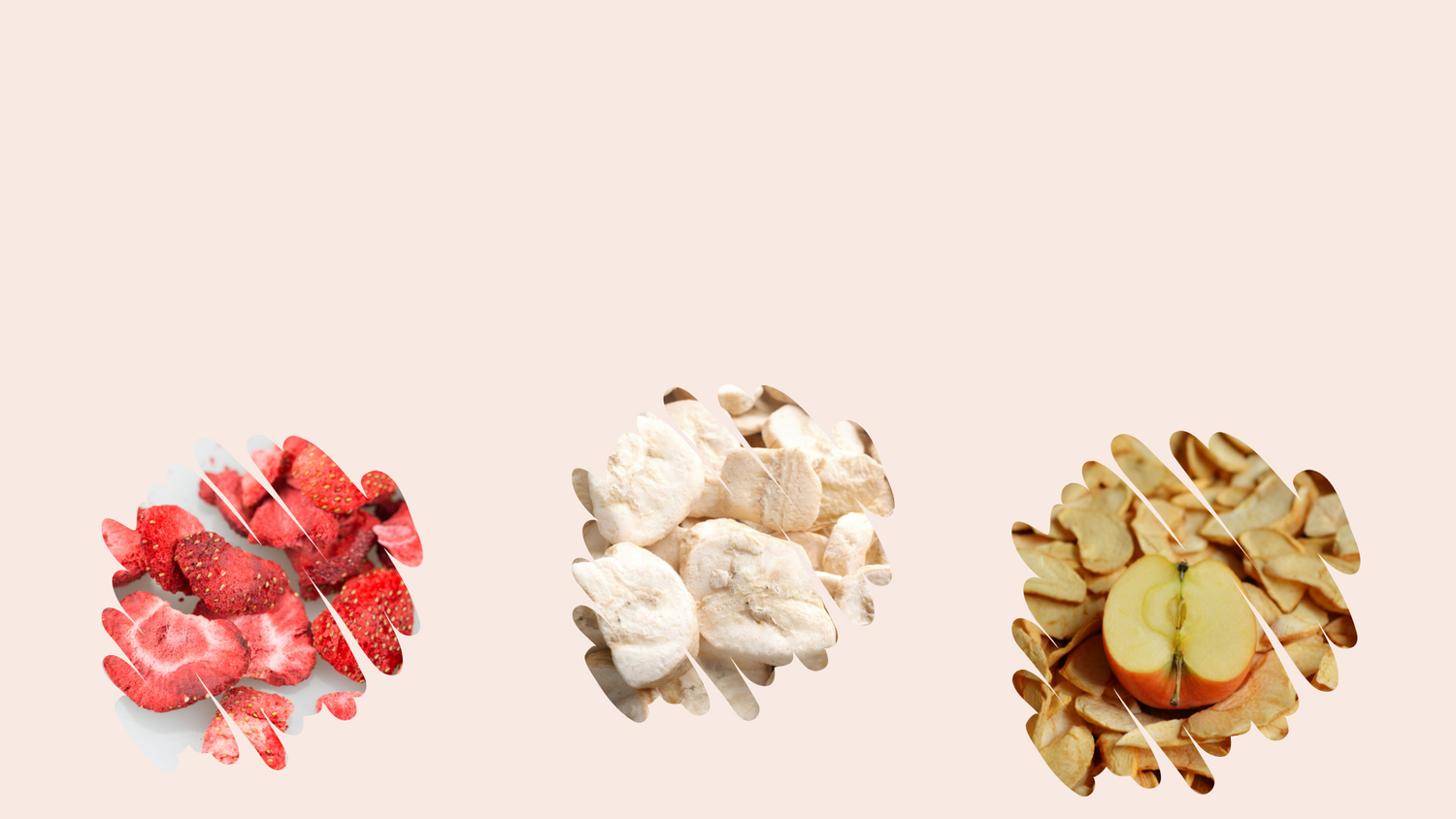 Discover the magic of freeze-dried fruit! Concentrated, nutritious, crunchy and bursting with flavour. Get a daily dose of nutrients with each bite of this treat-like snack!